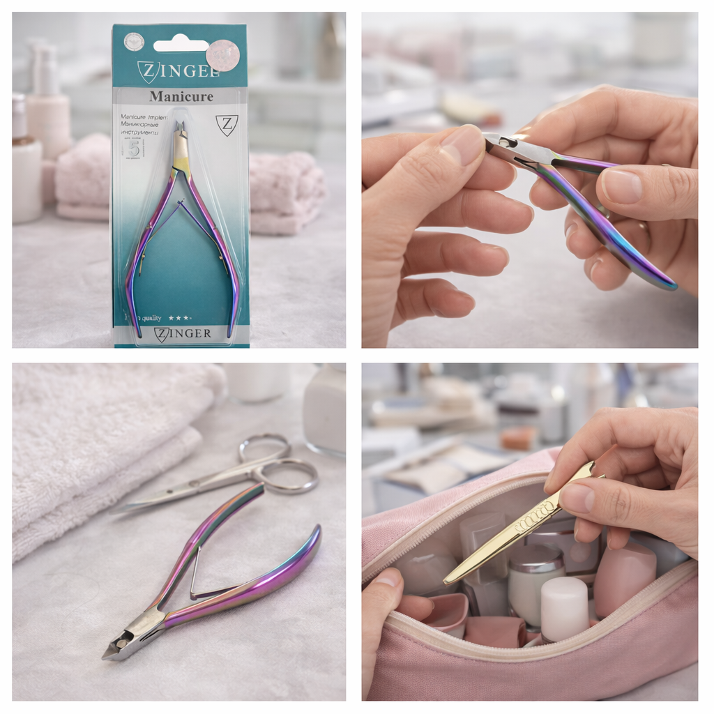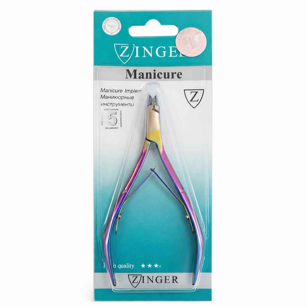 Trim excess cuticles with precision using the ZINGER Professional Cuticle Nipper. Designed with sharp, accurate blades and a smooth spring mechanism, it ensures clean cuts without pulling or tearing. The stylish rainbow finish adds a premium look while delivering professional performance for both home and salon use. avaible at grace